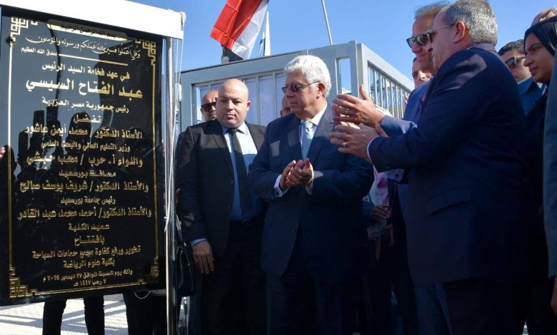 افتتاح وزير التعليم العالي ومحافظ بورسعيد لحمام السباحة الجديد بكلية التربية الرياضية جامعة بورسعيد
