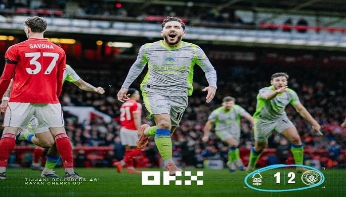 انتهى الشوط الأول بالتعادل السلبي بين الفريقين. ولكن في الشوط الثاني، تمكن مانشستر سيتي من تسجيل هدفه الأول عبر لاعبه تيجاني ريجنديرز في الدقيقة 48. وبعد ذلك، أدرك نوتنجهام فورست التعادل عن طريق أوماري هوتشينسون في الدقيقة 54. ومع اقتراب نهاية المباراة، أضاف السيتي هدفه الثاني عن طريق ريان شرقي في الدقيقة 83، ليحقق فوزًا مهمًا.
