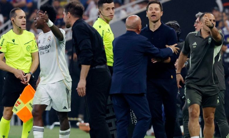 أظهرت لقطات الكاميرات التوتر الكبير بين دييغو سيميوني مدرب أتلتيكو مدريد وفينيسيوس جونيور لاعب ريال مدريد، خلال نصف نهائي كأس السوبر الإسباني الذي أقيم في جدة.