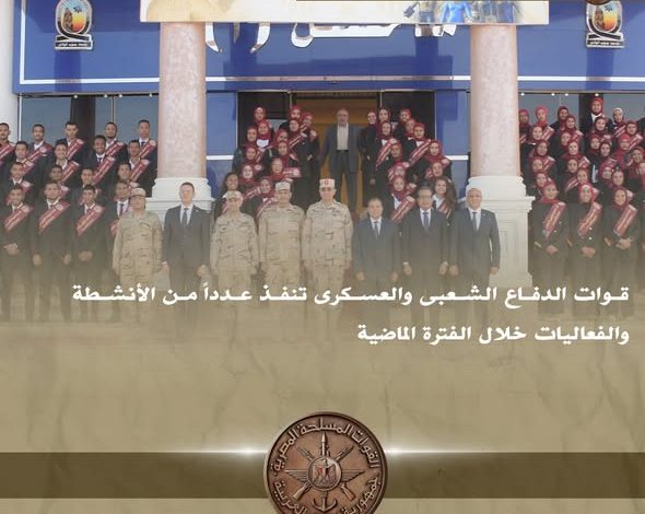 وخلال هذه الفعاليات، نقل اللواء أح / هشام حسني حسن، قائد قوات الدفاع الشعبي والعسكري، تحيات وتقدير الفريق أول / عبد المجيد صقر، القائد العام للقوات المسلحة وزير الدفاع والإنتاج الحربي، والفريق / أحمد خليفة، رئيس أركان حرب القوات المسلحة، إلى الحضور. وأكد على أهمية هذه المشاريع التي تُنفذ بمختلف المحافظات لتحقيق الجاهزية والاستعداد العالي للتعامل مع الأزمات والكوارث، وإدارتها بشكل علمي يضمن السيطرة عليها. كما أشار إلى ضرورة امتلاك الشباب الوعي الحقيقي بمخاطر وتحديات العصر وكيفية التصدي لها بما يعزز مصلحة الوطن فوق كل اعتبار.
