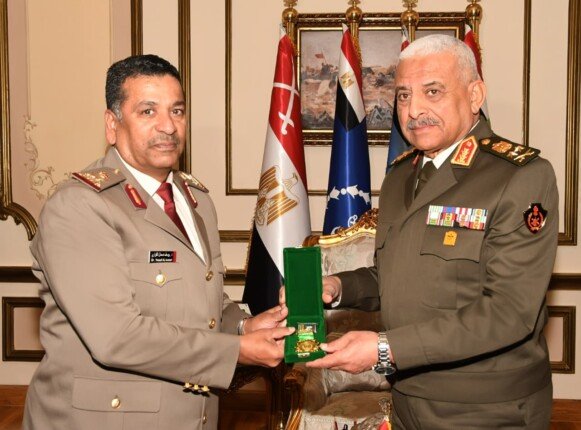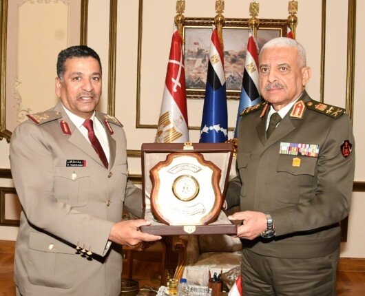 استقبل الفريق أول عبد المجيد صقر، القائد العام للقوات المسلحة ووزير الدفاع والإنتاج الحربي، اللواء الركن يوسف دسمال مبارك الكواري، رئيس الاتحاد العربي للرياضة العسكرية، بحضور الفريق أحمد خليفة، رئيس أركان حرب القوات المسلحة، في مقر الأمانة العامة لوزارة الدفاع.