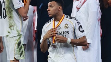 طالب كيليان مبابي، مهاجم ريال مدريد، زملاءه في الفريق بالانصراف من أرض الملعب فور تسلمهم الميداليات بعد الهزيمة من برشلونة…